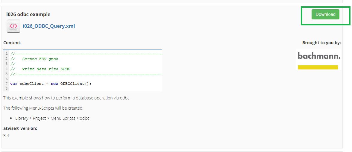 2. Import the ODBC example function from atvise live: