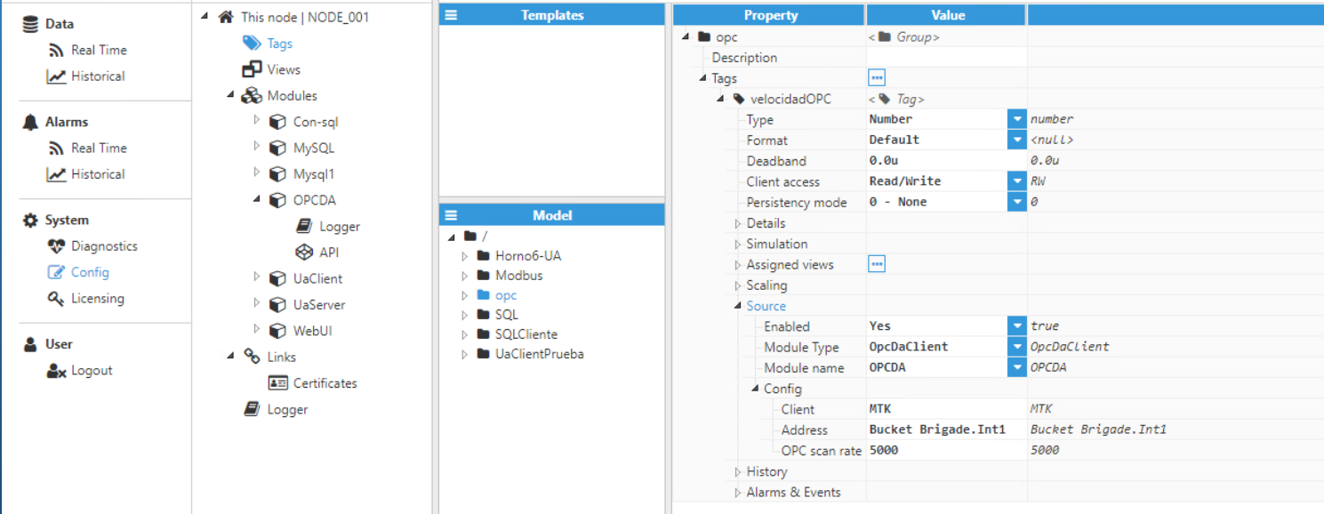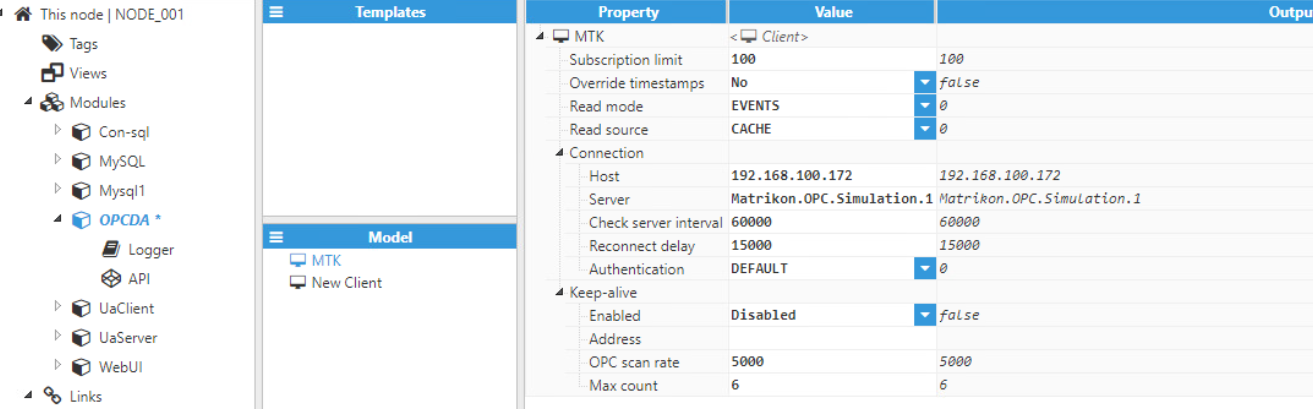in this example we used the Matrikon OPC Simulation, but you need to complete this information with your OPCDA.