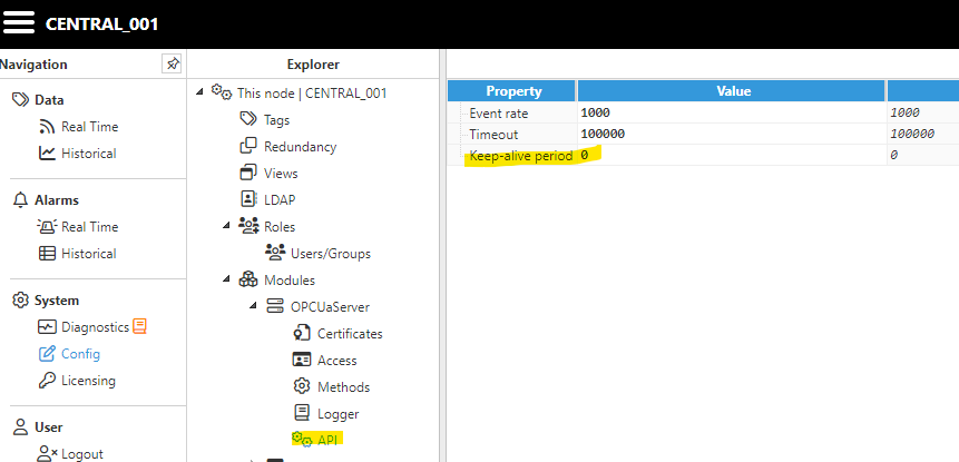 This configuration of the address space was taking way more time that is configured in the Keep Alive Section of the API configuration, that in it's default it's 60.000ms.