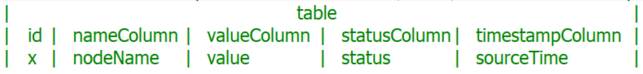 This script can be used to select a row from a database table and write the value, status and timestamp into an atvise node. The database structure is like this: