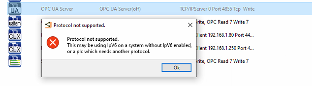 This may be using IPv6 on a system without IPv6 enabled, or a PLC which needs another protocol.